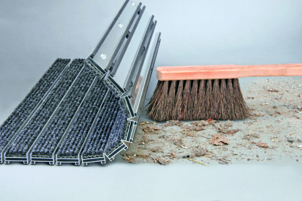Das Profi-Schmutzfangsystem lässt sich problemlos aufrollen. So kann die Reinigung des Bodenrahmens einfach mit dem Handbesen oder Industriestaubsauger erfolgen.