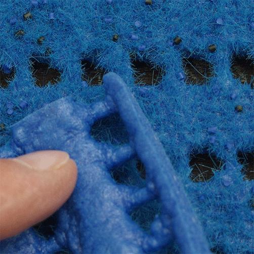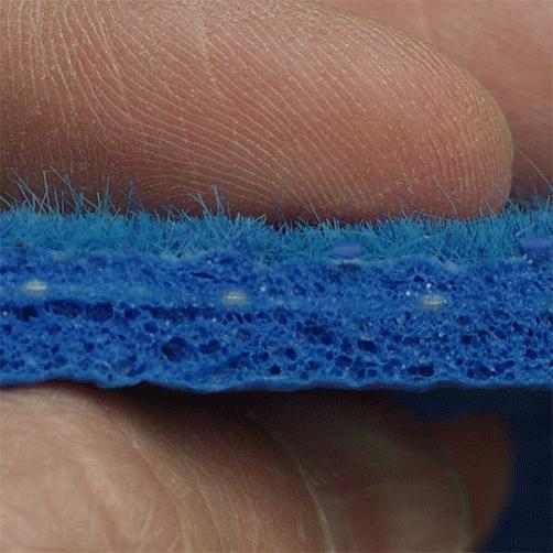 - Material: PES/Glasgarn Gewebe beidseitig beschichtet mit PVC-Paste, Oberfläche mit Polyamid Flocken und PVC-Granulat, Unterschicht in Lamellenform
