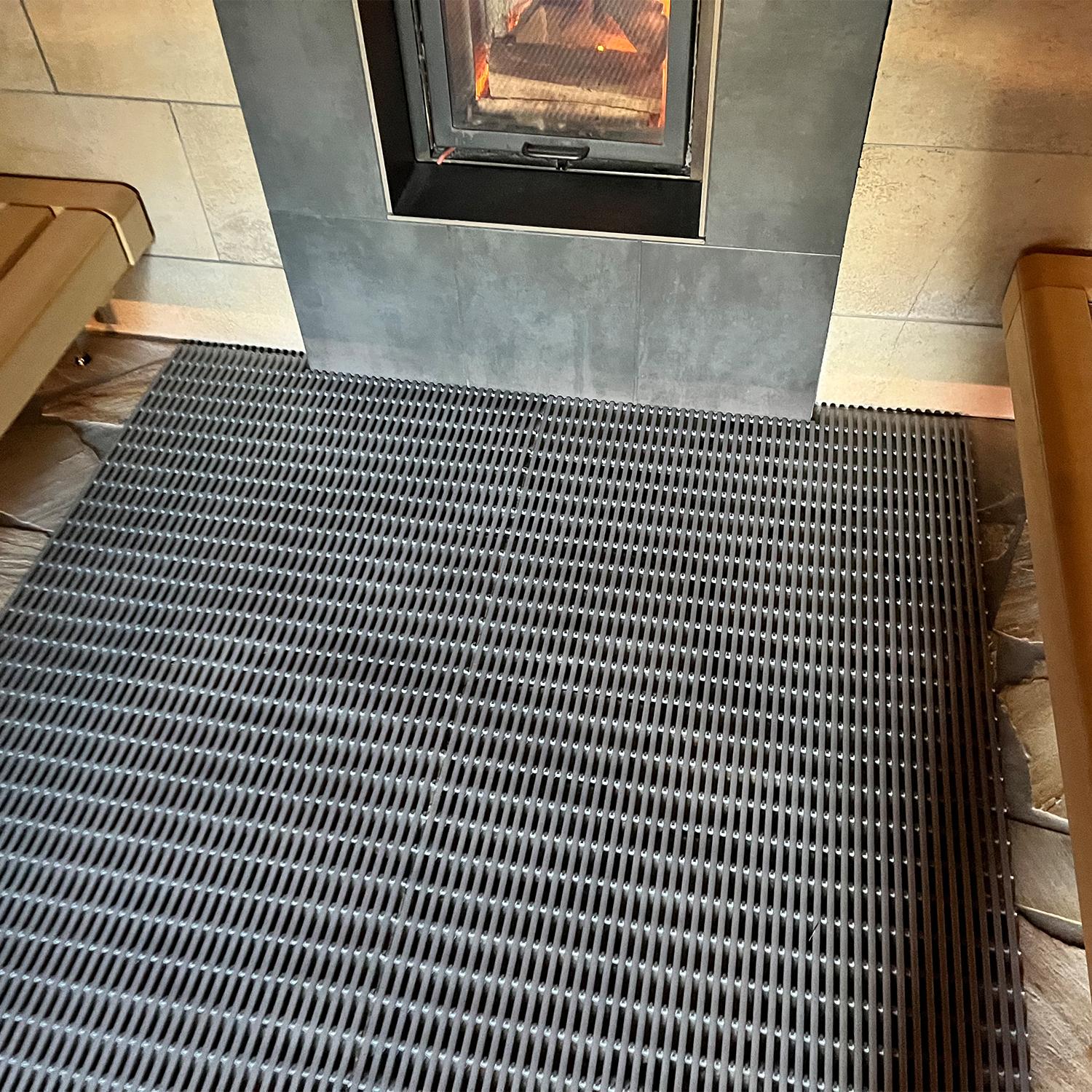 Der Barfußrost STEP RELAX ist rutschhemmend, mit sehr hoher Elastizität und angenehm weich. Durch die sehr gute Temperaturbeständigkeit bis +80°C (kurzfristig bis 100°C) eignet er sich insbesondere auch für Saunen und Wellnessbereiche.