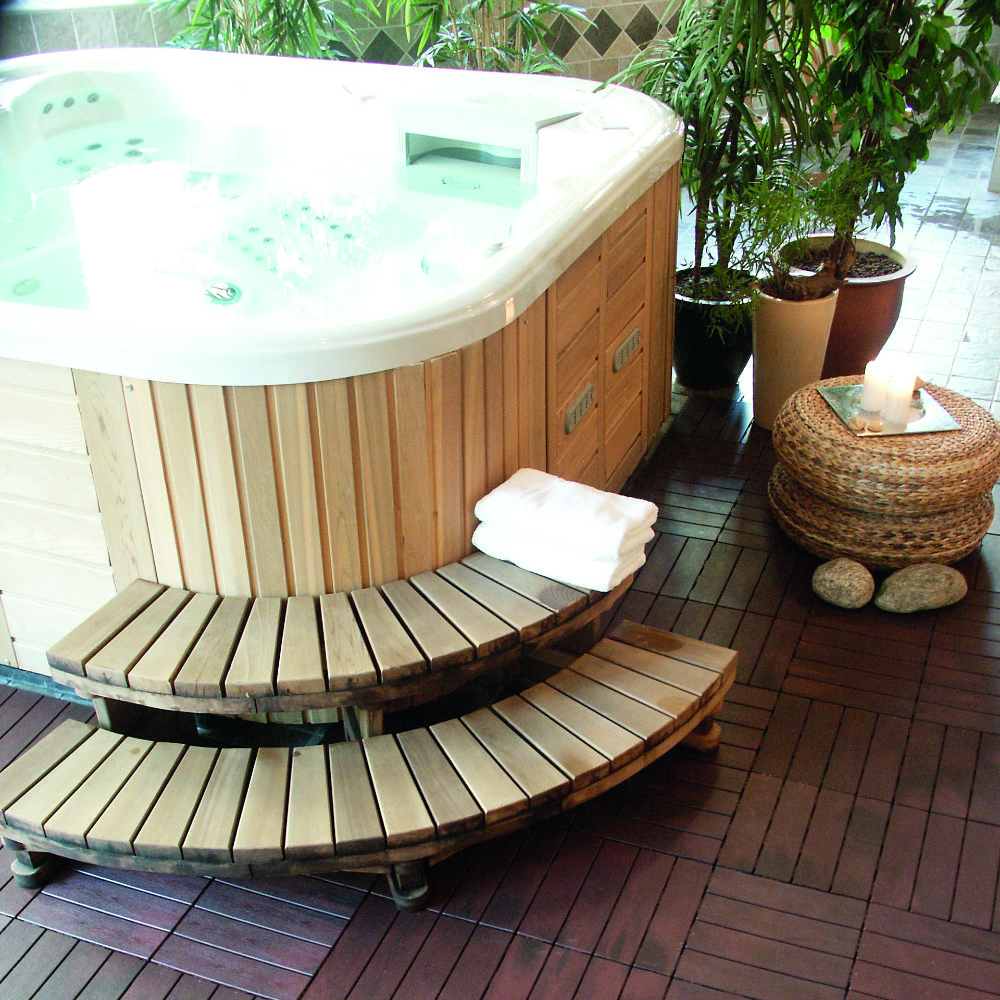 - Als stilvoller Antirutschbelag im Wellnessbereich, in der Sauna, auf dem Balkon