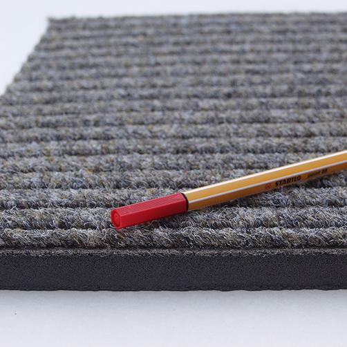 Hochwertige Eingangsmatte in Polvlies-Machart, mit Rillenstruktur und dicker, dämpfender Schaum-Unterseite für angenehm weiches Laufgefühl.