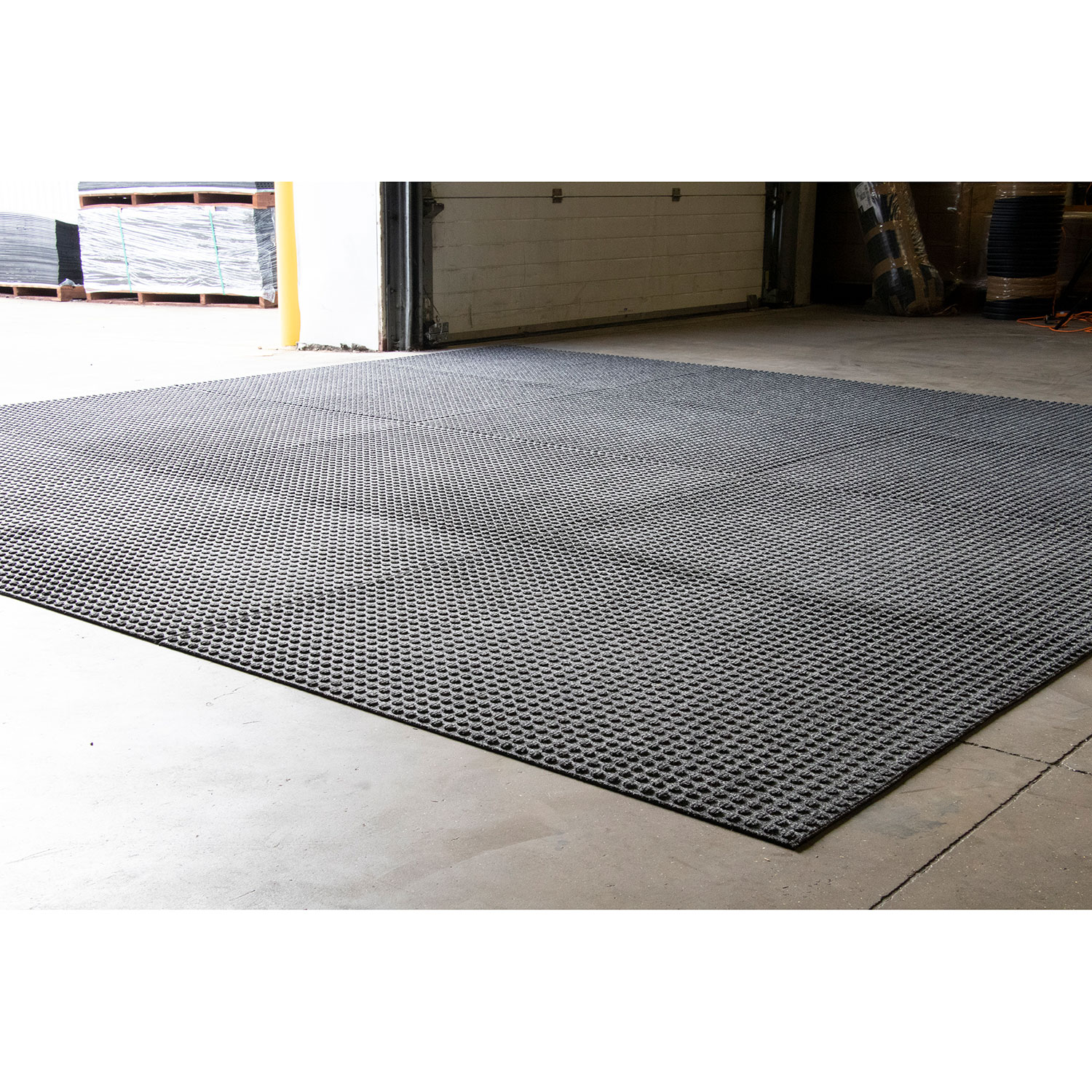 - Matten können einzeln oder nebeneinander verlegt werden, um größere Flächen abzudecken. Wir empfehlen, mindestens 3 Matten hintereinander auszulegen, damit die Räder des Gabelstaplers komplett abrollen können