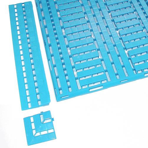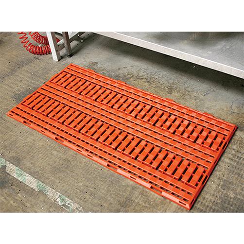 Der Fußbodenrost Work-Deck ist die leichte Alternative zum Holzrost (Holzrost ohne Anfahrkeil, Holzrost mit Anfahrkeil) und kann mit Gabelstapler oder Hubwagen überfahren werden. Durch die Anfahrleisten und die Eckprofile können Stolperfallen vermieden werden und das Befahren wird problemlos möglich.