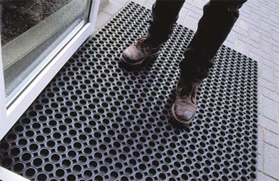 Klassische Ringgummimatte für den ganzjährigen Einsatz innen und außen. Die Gummimatte ist für hohe Belastungen ausgelegt. Besonders geeignet ist die Bodenmatte für Eingangs- und Gewerbebereiche mit hohem Personenaufkommen. Durch die offene Struktur besitzt die Matte einen hohen Schmutzfangeffekt, Wasser kann zügig abfließen.