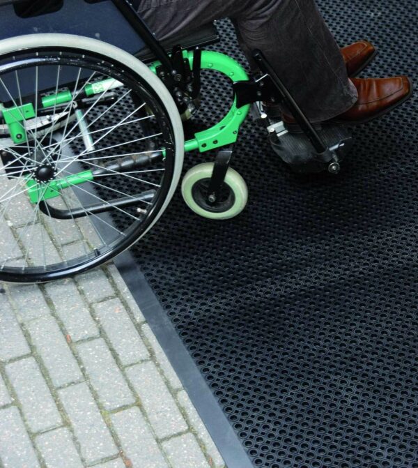 - Umrandung als Stolperschutz und zur besseren Befahrbarkeit der Matte mit Rollstuhl, Einkaufswagen, Koffer etc.
